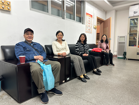 图注:清晨,黄家祐老师回学院捐款,并与行政老师们合影