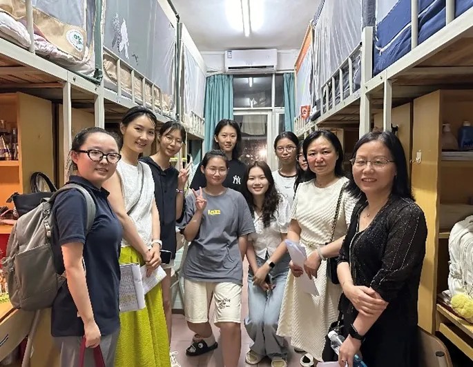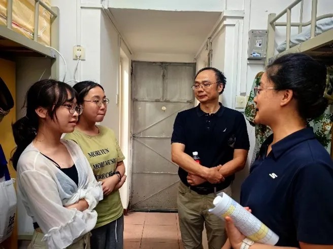 彩票 的各位领导们和辅导员走访了新生宿舍,与同学们进行了亲切愉快的交流。老师们亲切询问了新生们的个人情况,向他们初步介绍专业情况,并鼓励他们遇到问题可以向学院老师和学长学姐们请教。同学们表示感受到了外院大家庭的无微不至的温暖与关怀,对即将到来的学习与生活充满好奇和期盼。
