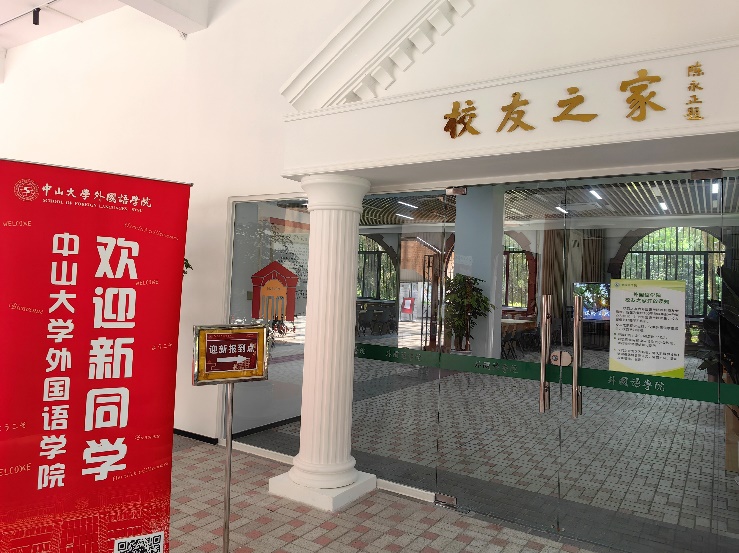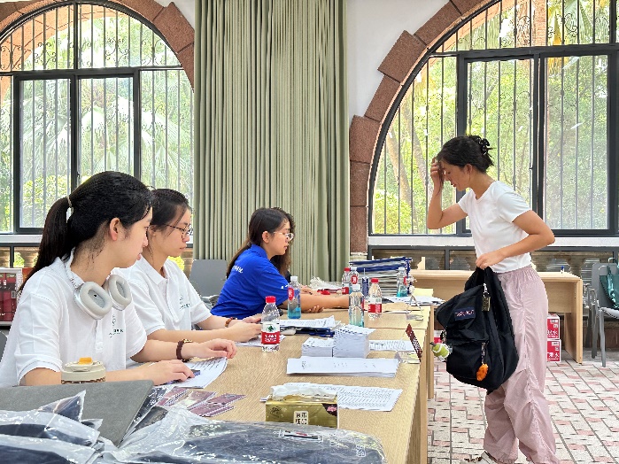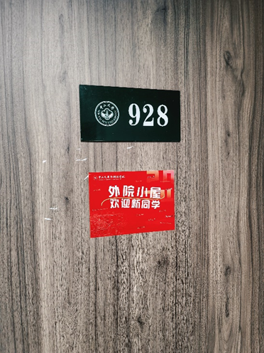 新生宿舍门前,以帮助新生能够更便捷更顺利入住宿舍,感受到细致温暖的迎新氛围。