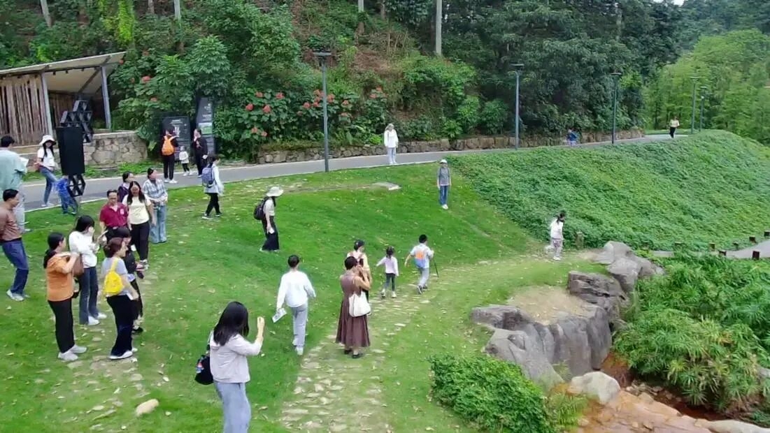 午饭过后,大家出发前往本次秋游的艺术殿堂——从化天人山水大地艺术园。天人山水以广袤的山水与田园为基调,巧妙地将大地艺术融入自然。园内汇集了600多种奇花异卉与苍然古树,每一处皆成风景。大家乘坐园区电瓶车,轻松游览这片占地3456亩的生态艺术王国。大家或在山间漫步,或在丛林穿越,或在茶室品茶,共同欣赏这个四季花谷,感受这座以大地为画布的立体精品花园,深刻感悟“天人合一”的和谐境界。