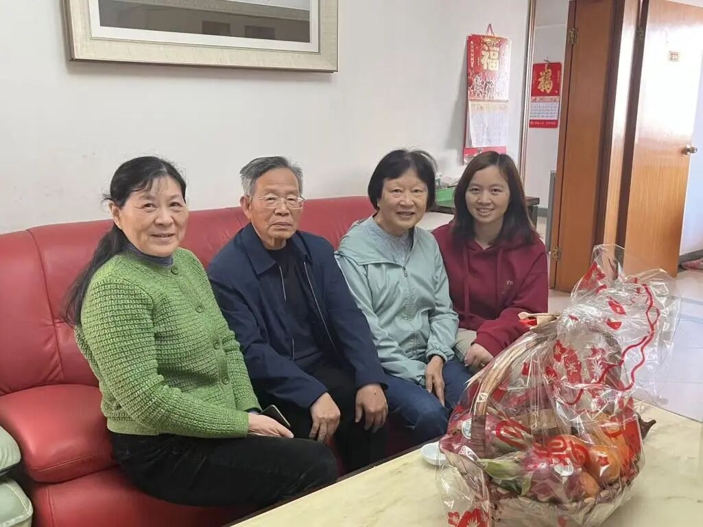 1月29日下午,王桃花副院长和赵星星老师探望了邝燕玉老师,与其温情叙旧,详细了解其退休后赴美工作生活的点滴以及回国后的生活状态与身体健康情况,叮嘱邝老师保重身体,并送去美好的节日祝福。